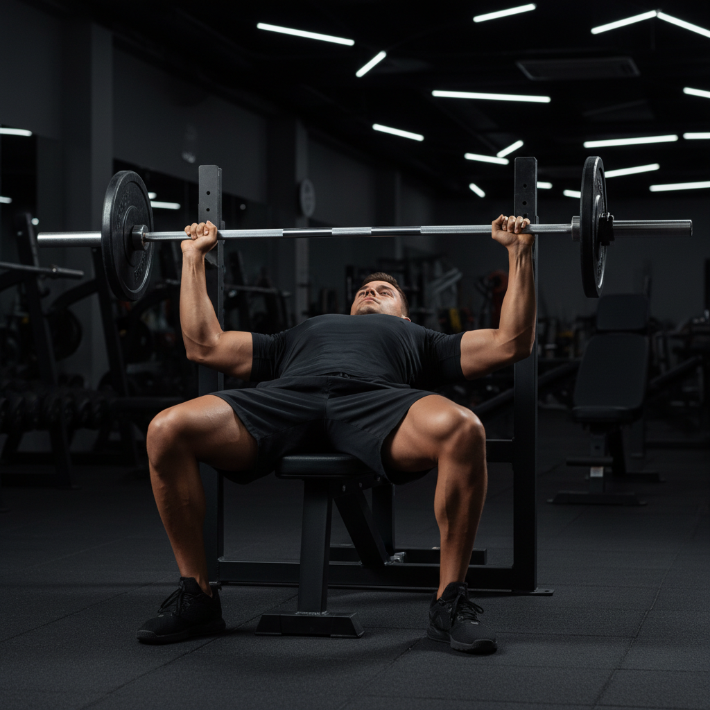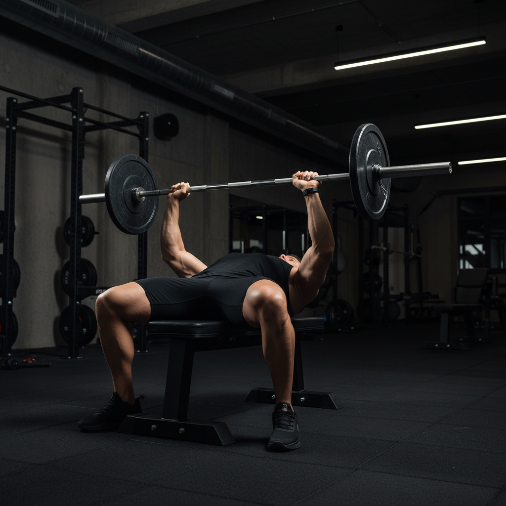 The barbell bench press is the gold standard for building upper body pushing strength. Lying on a flat bench, you lower a loaded barbell to your chest and press it back up. It primarily targets the pectoralis major while also working the anterior deltoids and triceps.