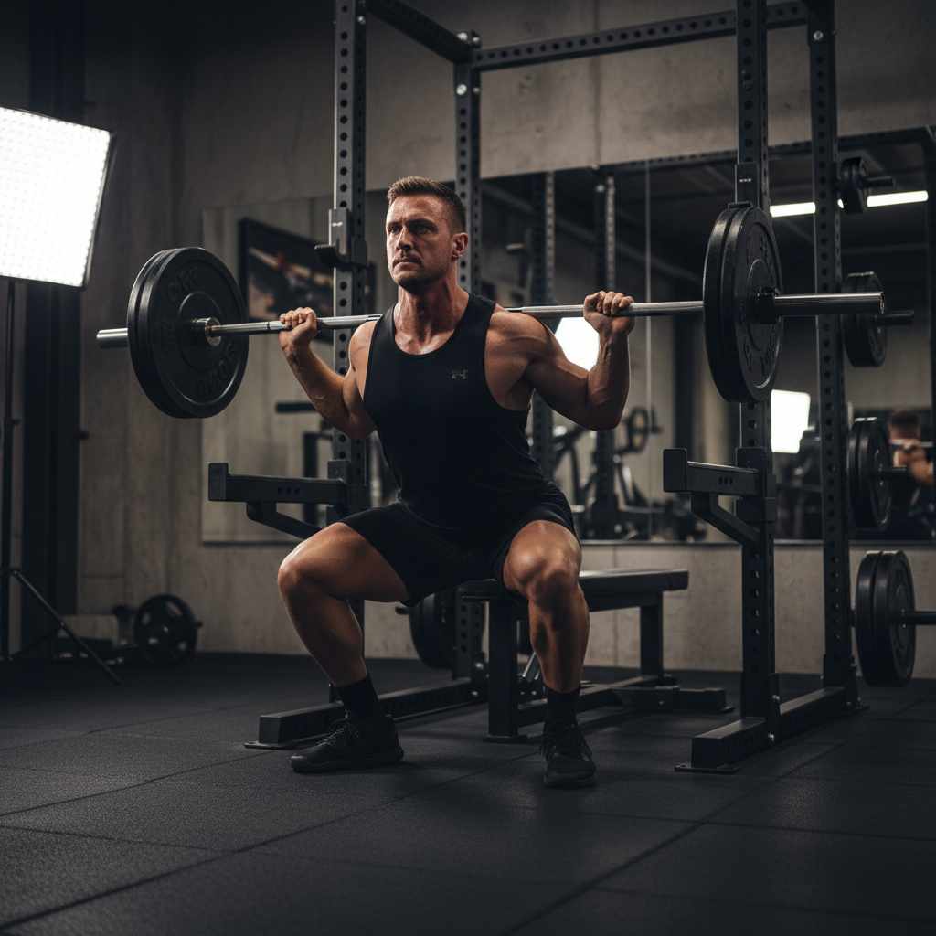 AdvancedA 2-3 second pause is held at the bottom of the squat, eliminating the stretch reflex. This builds strength out of the hole and reinforces proper bottom position mechanics.
