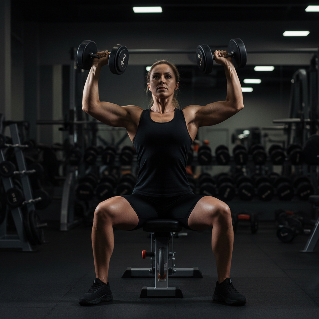 IntermediateProvides independent arm movement allowing natural pressing path while seated position removes leg drive to isolate shoulders. Greater range of motion than barbell pressing.