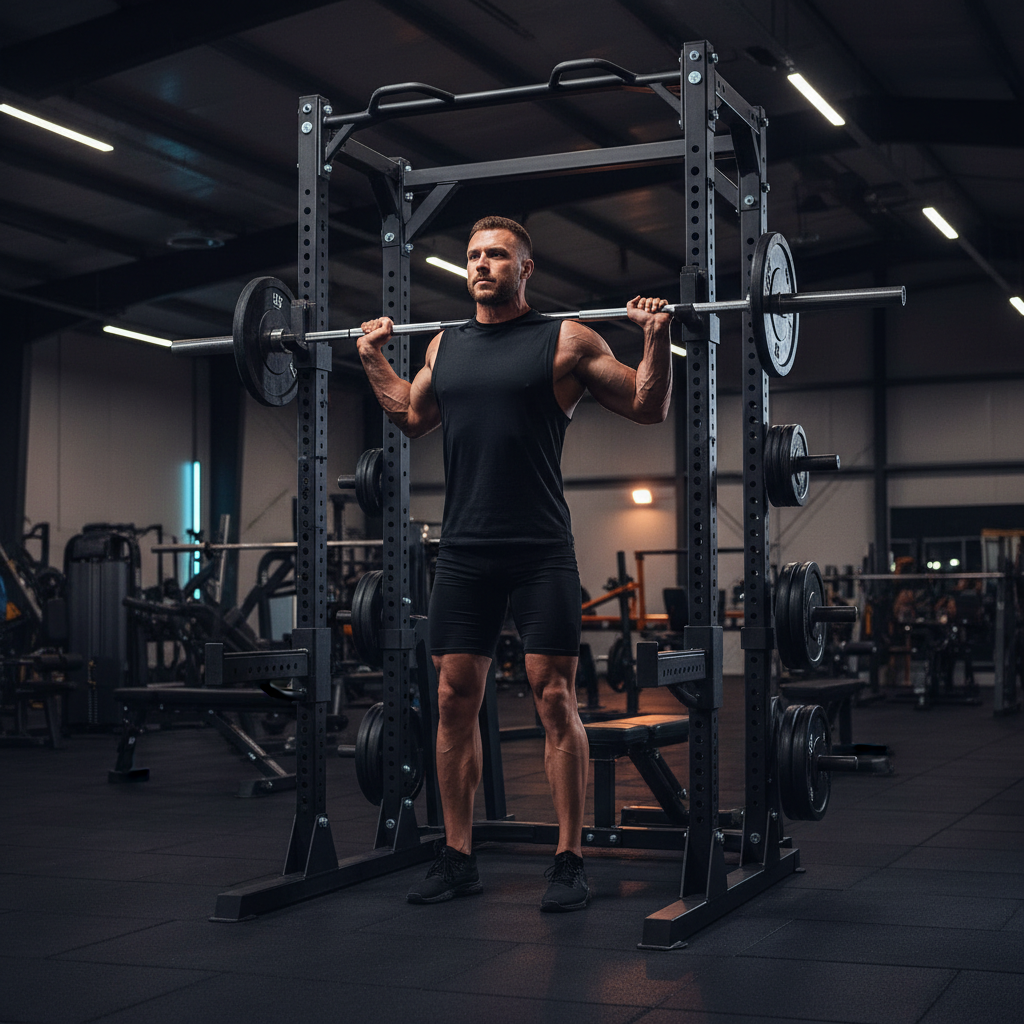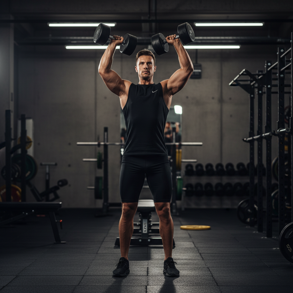 The overhead press is the primary exercise for building shoulder strength and size. Standing with a barbell at shoulder height, you press it overhead to full lockout. It targets all three deltoid heads with emphasis on the anterior and lateral heads.