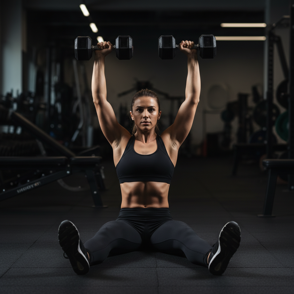 AdvancedPerformed seated on the floor with legs extended, removing all leg drive and back support. This isolates the shoulders completely and demands exceptional core stability and thoracic mobility.